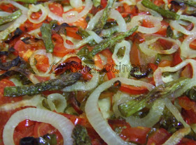 al damunt les rodanxes de tomaca, les tires de primentó, les rodanxes de ceba i