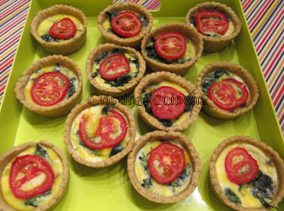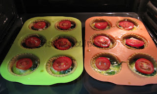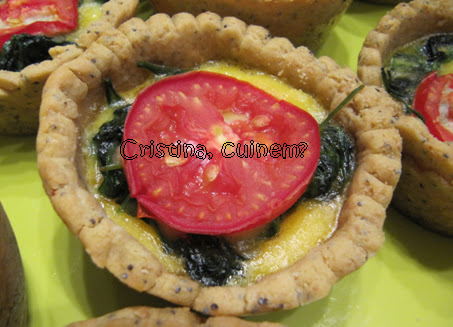 en lo formatge, los espinacs, l’ou i ho decorem en una rodanxa de tomaca.