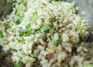 pebre, oli i menta a l’arròs. Ho barregem bé. També afegim aquells trossets
